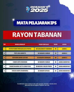 Kami Ucapkan Selamat dan Sukses kepada Juara Tingkat Rayon Olimpiade Civic Education and Social Studies Jenjang SD/MI Mata Pelajaran IPS Tahun 2025. Persiapkan diri lebih matang untuk menghadapi babak tingkat Provinsi seluruh Indonesia.