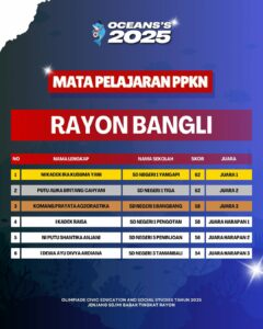 Kami Ucapkan Selamat dan Sukses kepada Juara Tingkat Rayon Olimpiade Civic Education and Social Studies Jenjang SD/MI Mata Pelajaran PPKn Tahun 2025. Persiapkan diri lebih matang untuk menghadapi babak tingkat Provinsi.