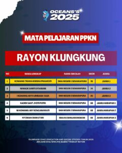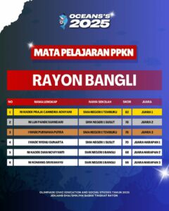 Kami Ucapkan Selamat dan Sukses kepada Finalis berdasarkan Akumulasi Nilai Seluruh Rayon Olimpiade Civic Education and Social Studies Jenjang SMA/SMK/MA Mata Pelajaran PPKn Tahun 2025. Persiapkan diri lebih matang untuk menghadapi babak tingkat Provinsi seluruh Indonesia.